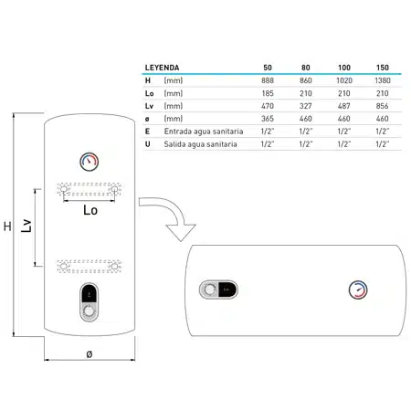 Los termos LAGO destacan por su alta eficiencia térmica (>90%), su aislamiento de 20 mm que minimiza las pérdidas de calor y su interior de acero esmaltado, que protege contra la corrosión y garantiza agua limpia y segura. Además, su instalación vertical u horizontal ofrece flexibilidad en cualquier espacio, ya sea en cocina, baño o trastero.
